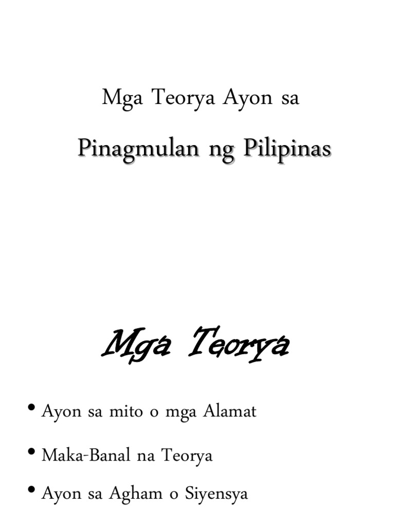 Ayon sa teoryang ito nagmula ang Pilipinas sa pagkalalang ng mundong kanyang kinabibilangan. Araling Panlipunan Ikalimang Baitang Alternative Delivery Mode Unang Markahan Modyul 2. Mga teorya sa pinagmulan ng pilipinas.